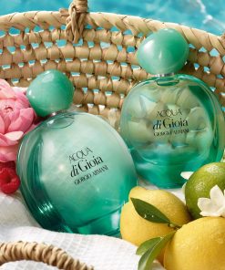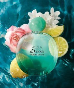 Un nuovo affascinante flacone a contrasto, realizzato nell’iconica forma arrotondata di ACQUA DI GIOIA, ora vestita da sfumature di verde, da un verde menta chiaro nella parte superiore del flacone a un turchese più profondo e luminoso alla base.