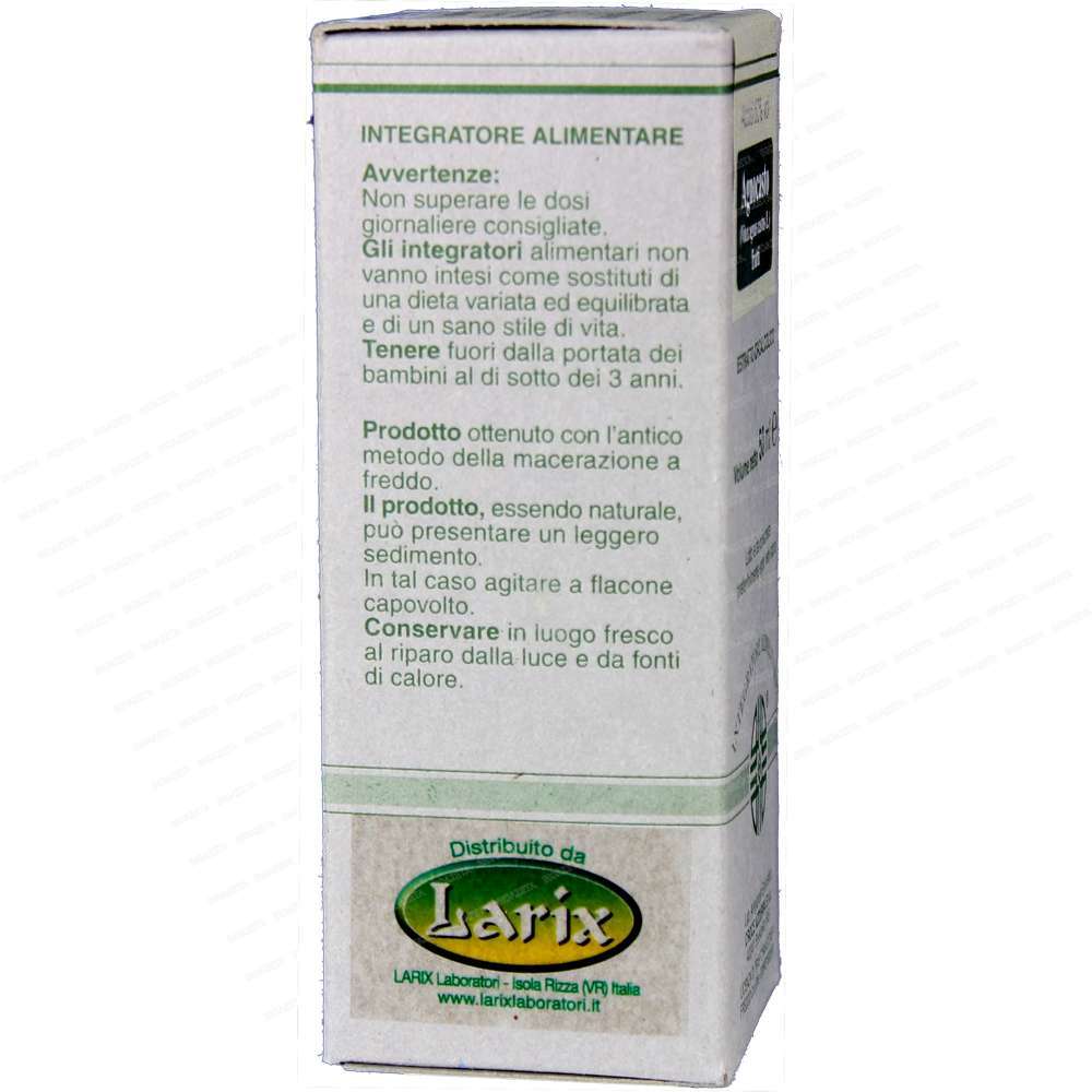 Gli estratti idroalcolici Larix sono ottenuti da piante fresche spontanee e da piccole coltivazioni biologiche. Eccezionalmente per le piante che non crescono in Italia abbiamo scelto quelle che offrono la maggior garanzia di qualità . (Serietà dell’ importatore, certificati di analisi ecc.). Il metodo estrattivo è quello della macerazione a freddo in alcool B.G neutro e acqua di origine montana. Grande importanza è stata data al periodo di raccolta delle piante, facendolo coincidere con il giusto TEMPO BALSAMICO, per avere così la massima concentrazione in principi attivi. Confezioni da 50 ml con pompetta contagocce imbustata a parte.