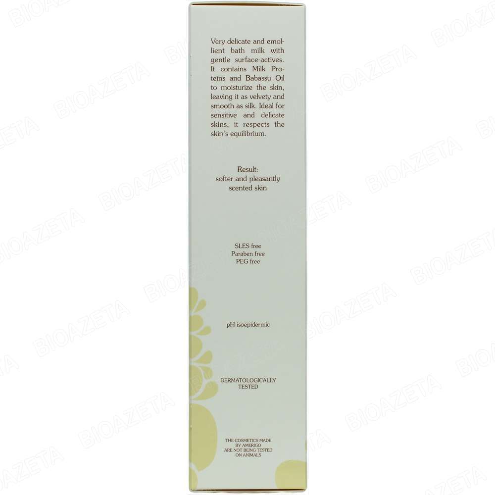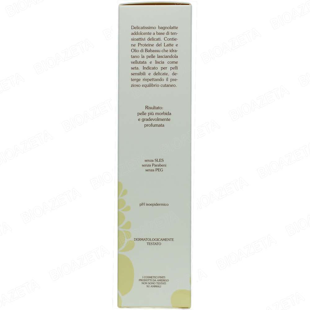 Delicatissimo bagnolatte addolcente a base di tensioattivi delicati. Contiene Proteine del Latte e Olio di Babassu che idratano la pelle lasciandola vellutata e liscia come seta. Indicato per pelli sensibili e delicate, deterge rispettando il prezioso equilibrio cutaneo.