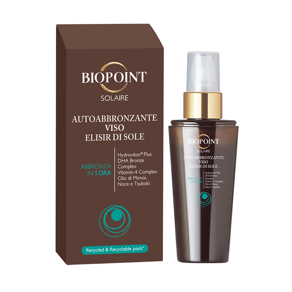 Siero autoabbronzante che dona al viso un effetto abbronzato intenso e luminoso in solo un’ora. La texture setosa, dal caratteristico colore marrone, si fonde istantaneamente con la pelle, evitando la comparsa di antiestetiche macchie. Con Hydroviton® Plus e DHA Bronze Complex, la formula interagisce con gli amminoacidi della pelle e attiva la comparsa del colorito per un effetto “pelle baciata dal sole”. Arricchito con Vitamin-4 Complex (Vitamina A, E, C, F) e Oli Vegetali (Olio di Monoi, Noce e Tsubaki), ad azione antiossidante e nutriente,
