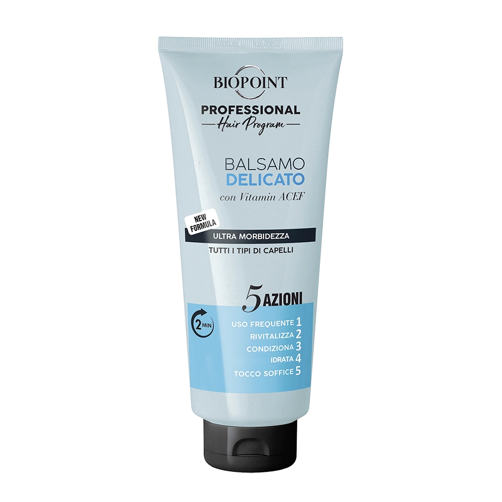 Il Balsamo Delicato con 5 Azioni dona nuova vitalità e benessere a tutti i tipi di capelli, anche quelli più delicati, per un risultato professionale direttamente a casa tua. La sua innovativa formulazione ad azione rapida è arricchita con un blend di Vitamine (ACEF), Cheratina ed Estratto diAloe: