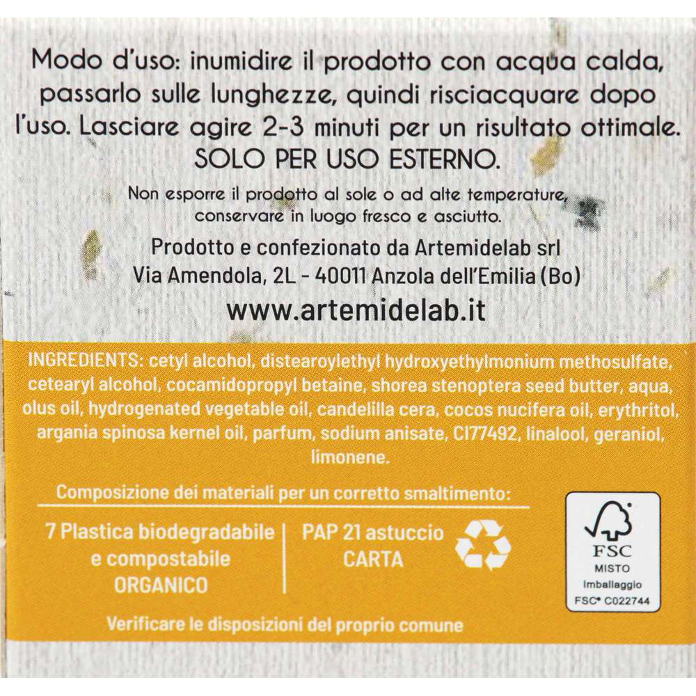 Il balsamo solido Artemidelab è garantito per almeno 50 applicazioni in quanto, trattandosi di un prodotto compatto e concentrato, necessita l’utilizzo di 1 grammo di prodotto a ogni applicazione: risparmiare la plastica di 2 flaconi del comune balsamo liquido fa indubbiamente la differenza, per il portafogli e per l’ambiente.