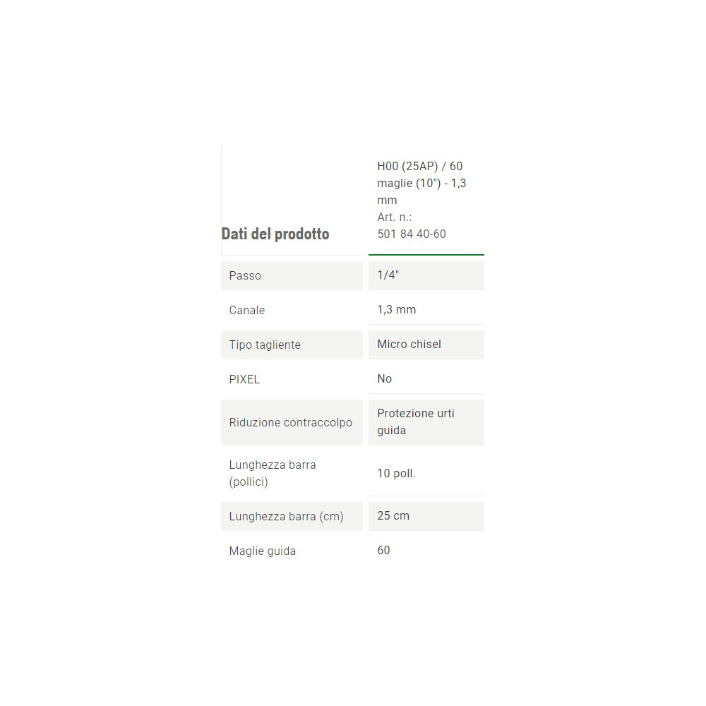 Catena motosega confezionata .325″ – 1,3 mm .050″ – 62 maglie Prof. S.tondo senza antirimbalzo