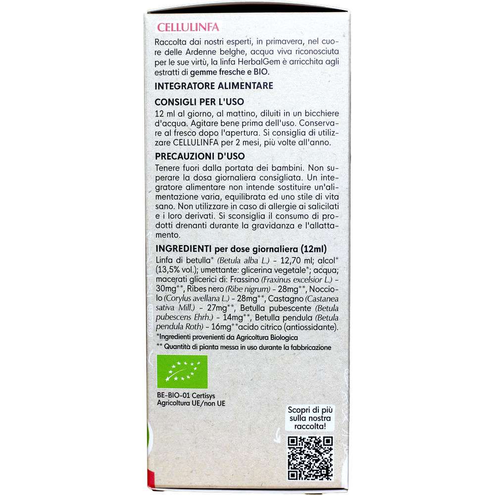Cellulinfa Dimagrimento 250ml Herbalgem; Da secoli, la preziosa linfa di betulla è il segreto per un corpo libero dai sovraccarichi e una pelle radiosa. Oggi, la sua potente azione drenante si fonde con la vitalità delle gemme di betulla, ribes nero, frassino, castagno e nocciolo, creando un’alchimia perfetta per liberarti dagli eccessi di peso e dai fastidiosi inestetismi.