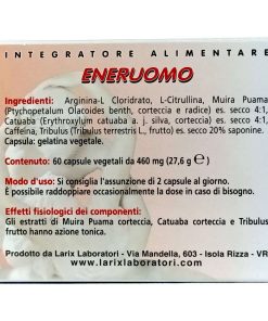 ENERUOMO 60 capsule è un integratore alimentare a base di arginina, citrullina, muira puama, catuaba, caffeina e Tribulus.