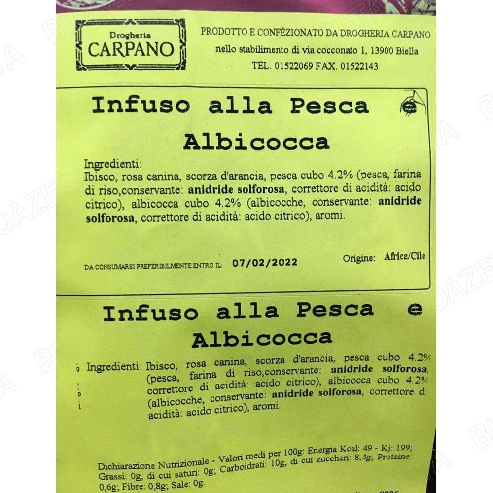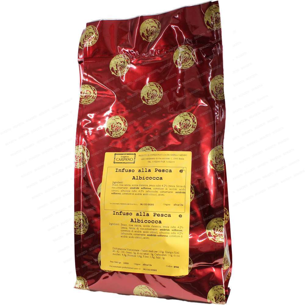Infuso pesca e albicocca 1kg Carpano; “Un infuso che ti farĂ sentire come se fossi in un giardino estivo, con il sapore della pesca e dell’albicocca che ti rinfrescherĂ .”
