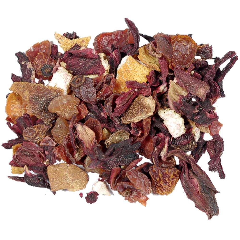 Ingredienti: Ibisco, rosa canina, scorza d’arancia, pesca cubo 4,2%, albicocca cubo 4,2%, aromi.