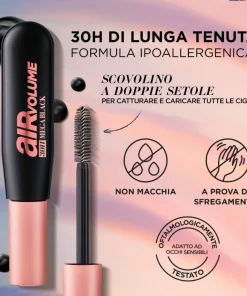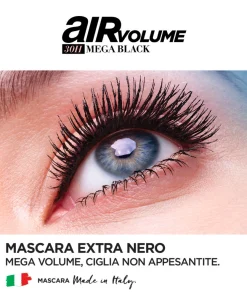 Air Volume Mega Black Mascara, Mascara Volumizzante, Tenuta fino 30H, Nero Intenso