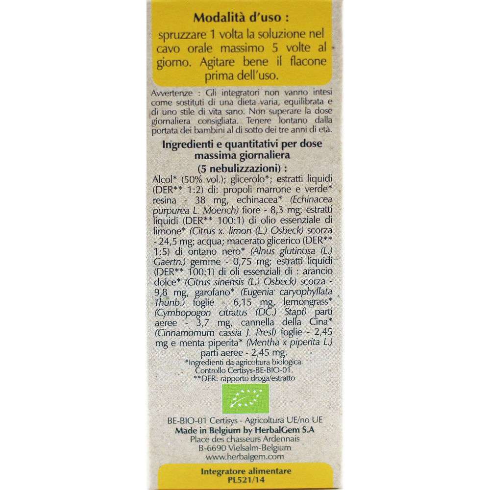 Propoli spray ampio spettro Bio 15ml Herbalgem; Una sinfonia di natura per la tua gola