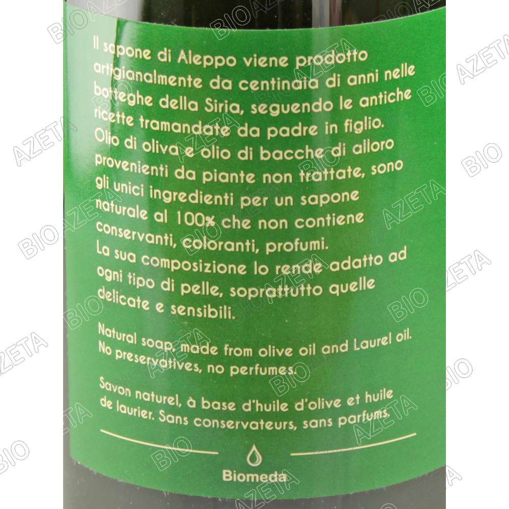 Sapone liquido aleppo 1L Biomeda; Il sapone liquido Aleppo é un sapone artigianale, prodotto seguendo le antiche tradizioni siriane.