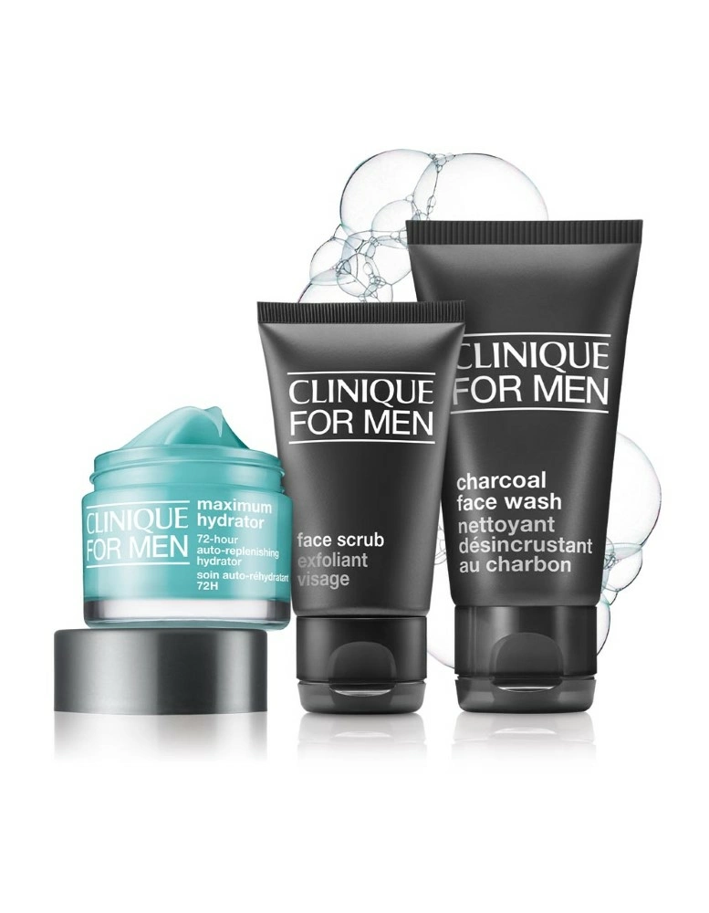 Clinique For Men Maximum Hydrator 72 Hour: WaterAquaEau, Dimethicone, Butylene Glycol, Glycerin, Trisiloxane, Trehalose, Sucrose, Ammonium Acryloyldimethyltaurate/Vp Copolymer, Hydroxyethyl Urea, Camellia Sinensis (Green Tea) Leaf Extract, Saccharomyces Lysate Extract, Aloe Barbadensis Leaf Water, Silybum Marianum (Lady’S Thistle) Extract, Betula Alba (Birch) Bark Extract, Caffeine, Thermus Thermophillus Ferment, Palmitoyl Hexapeptide-12, Magnesium Ascorbyl Phosphate, Sodium Hyaluronate, Tocopheryl Acetate, Caprylyl Glycol, Sorbitol, Oleth-10, Acrylates/C10-30 Alkyl Acrylate Crosspolymer, Sodium Polyaspartate, Saccharide Isomerate, Hydrogenated Lecithin, Glyceryl Polymethacrylate, Peg-8, Tromethamine, Hexylene Glycol, Citric Acid, Disodium Edta-Copper, Sodium Citrate, Disodium Edta, Bht, Potassium Sorbate, Sodium Benzoate, Phenoxyethanol, Green 5 (Ci 61570) <ILN46381> -Face Scrub Exfoliant Visage: WATER/AQUA/EAU, GLYCERYL STEARATE, SILICA, HEXYLENE GLYCOL, DISODIUM COCOAMPHODIACETATE, DISODIUM OLEAMIDO MIPA-SULFOSUCCINATE, MAGNESIUM ALUMINUM SILICATE, SALICYLIC ACID, STEARAMIDOETHYL DIETHYLAMINE, BUTYLENE GLYCOL, MENTHOL, TRISODIUM SULFOSUCCINATE, SODIUM SULFATE, OLEAMIDE MIPA, CARAMEL, METHYLISOTHIAZOLINONE, PHENOXYETHANOL