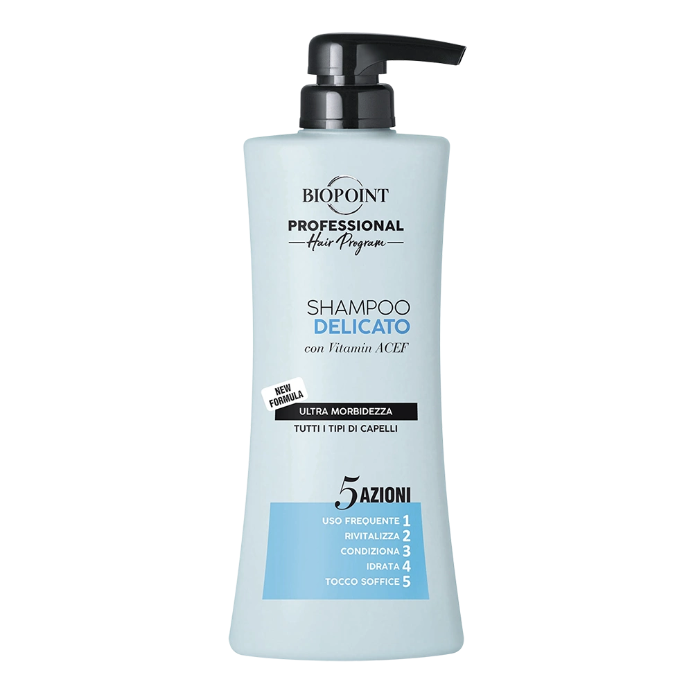 Lo Shampoo Delicato con 5 Azioni dona nuova vitalità e benessere a tutti i tipi di capelli, anche quelli più delicati, per un risultato professionale direttamente a casa tua. Con un blend di Vitamine (ACEF), Cheratina ed Estratto di Aloe: