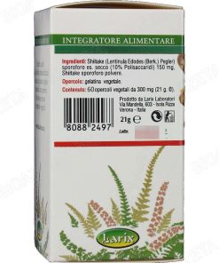 Shitake 60 capsule Larix; Ingredienti per opercolo: Shitake (Lentinula Edodes (Berk.) Pegler) sporoforo es. secco (10% Polisaccaridi) 150 mg, Shitake sporoforo polvere.