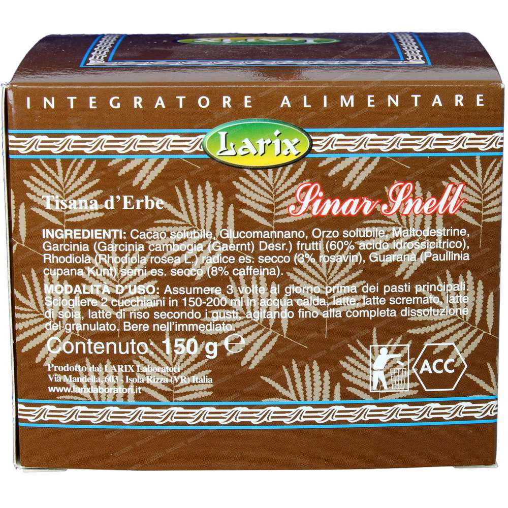 Sinar snell tisana solubile 150gr Larix; Per il controllo del senso di fame e l’equilibrio del peso corporeo.