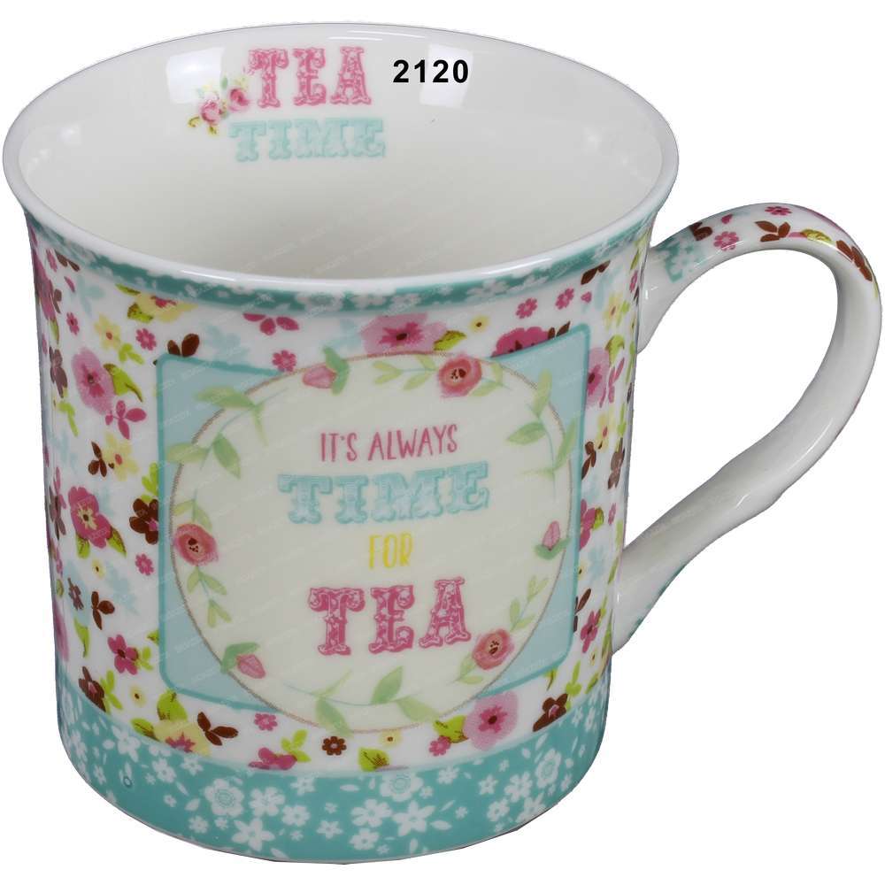 Tazza decorata Tea Time blu in scatola con stesso decoro