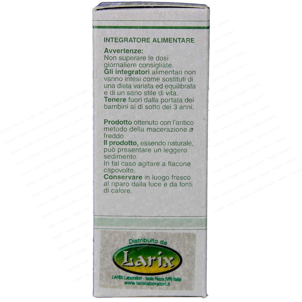 Gli estratti idroalcolici Larix sono ottenuti da piante fresche spontanee e da piccole coltivazioni biologiche. Eccezionalmente per le piante che non crescono in Italia abbiamo scelto quelle che offrono la maggior garanzia di qualità . (Serietà dell’ importatore, certificati di analisi ecc.). Il metodo estrattivo è quello della macerazione a freddo in alcool B.G neutro e acqua di origine montana. Grande importanza è stata data al periodo di raccolta delle piante, facendolo coincidere con il giusto TEMPO BALSAMICO, per avere così la massima concentrazione in principi attivi. Confezioni da 50 ml con pompetta contagocce imbustata a parte.